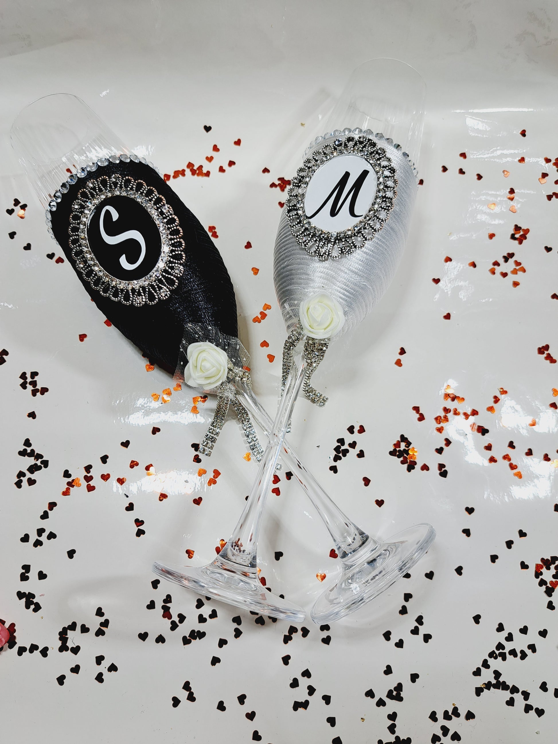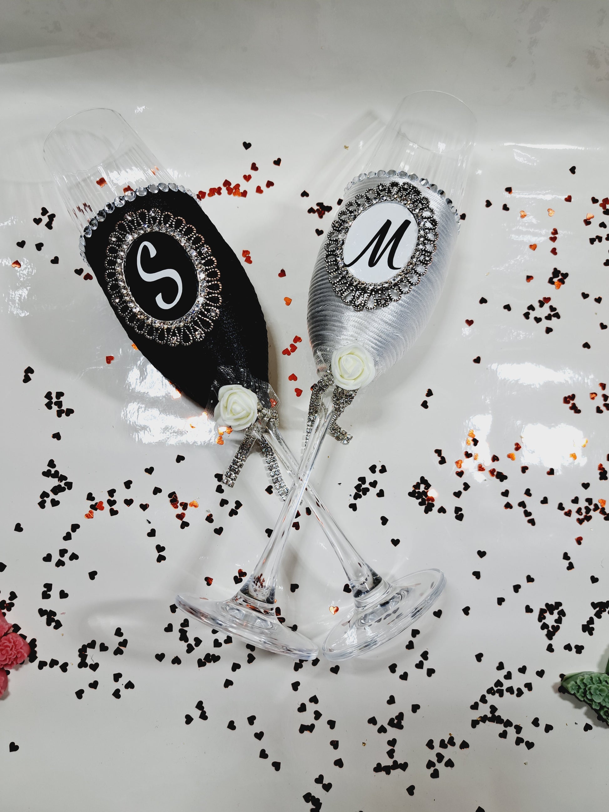Pahare personalizate Mire și mireasă alb negru