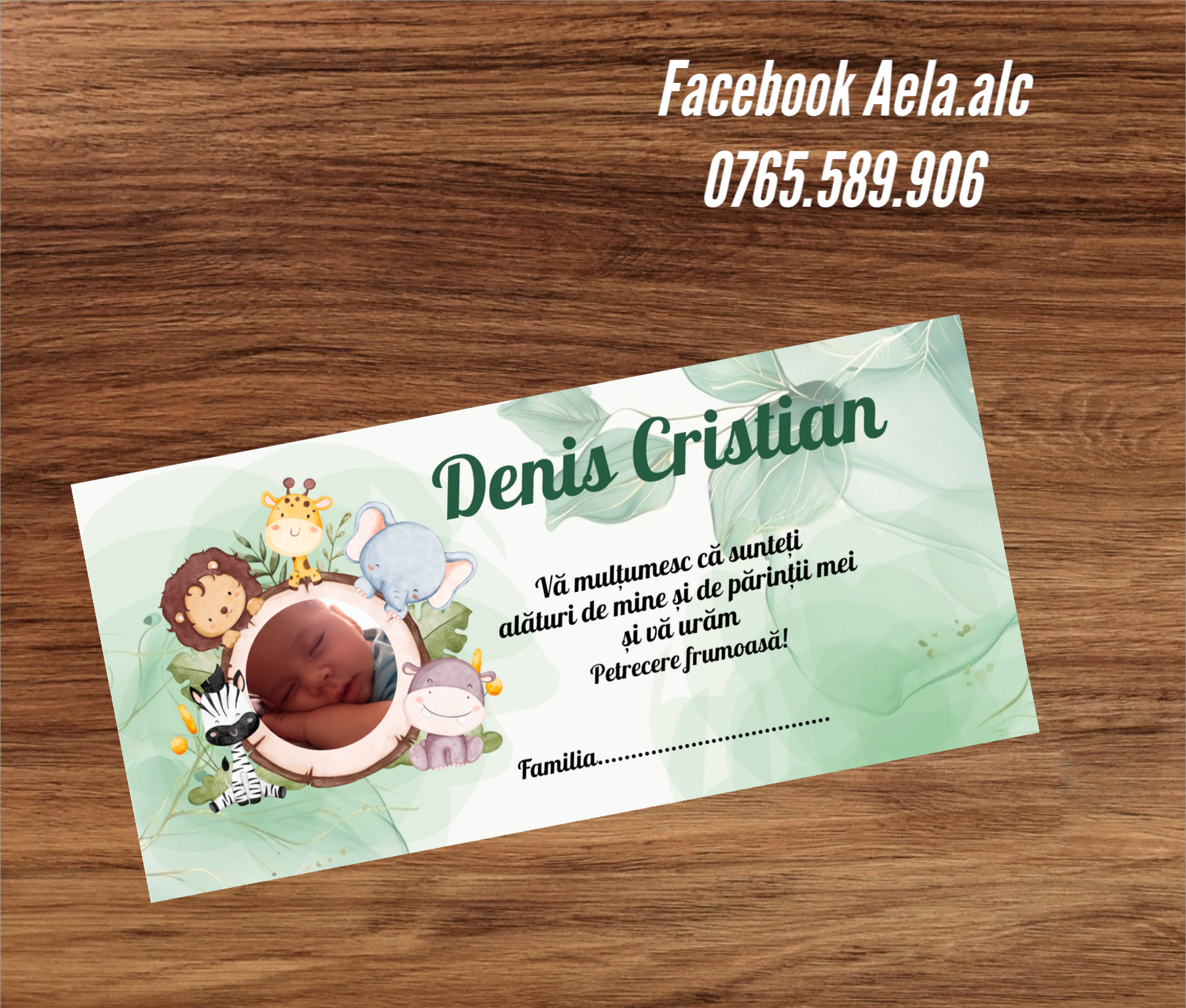 Plic de bani botez Animale safari cu poza bebe cod 117