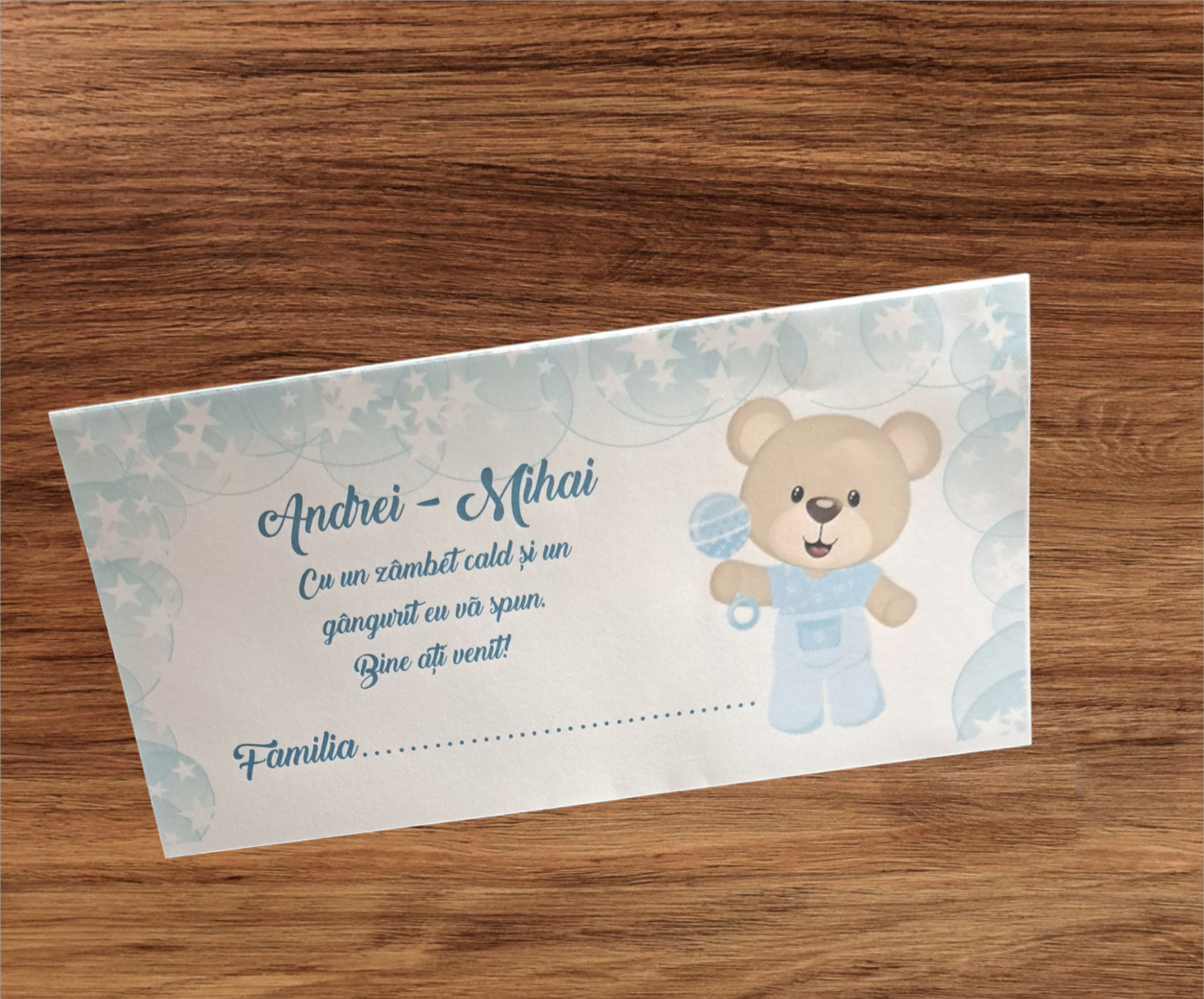 Plic de bani botez ursulet cu jucării cod 119