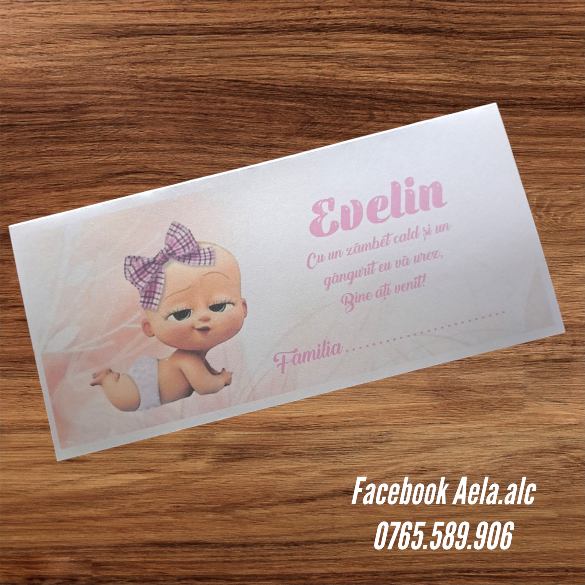 Plic de bani botez Bebelușă roz cod 98