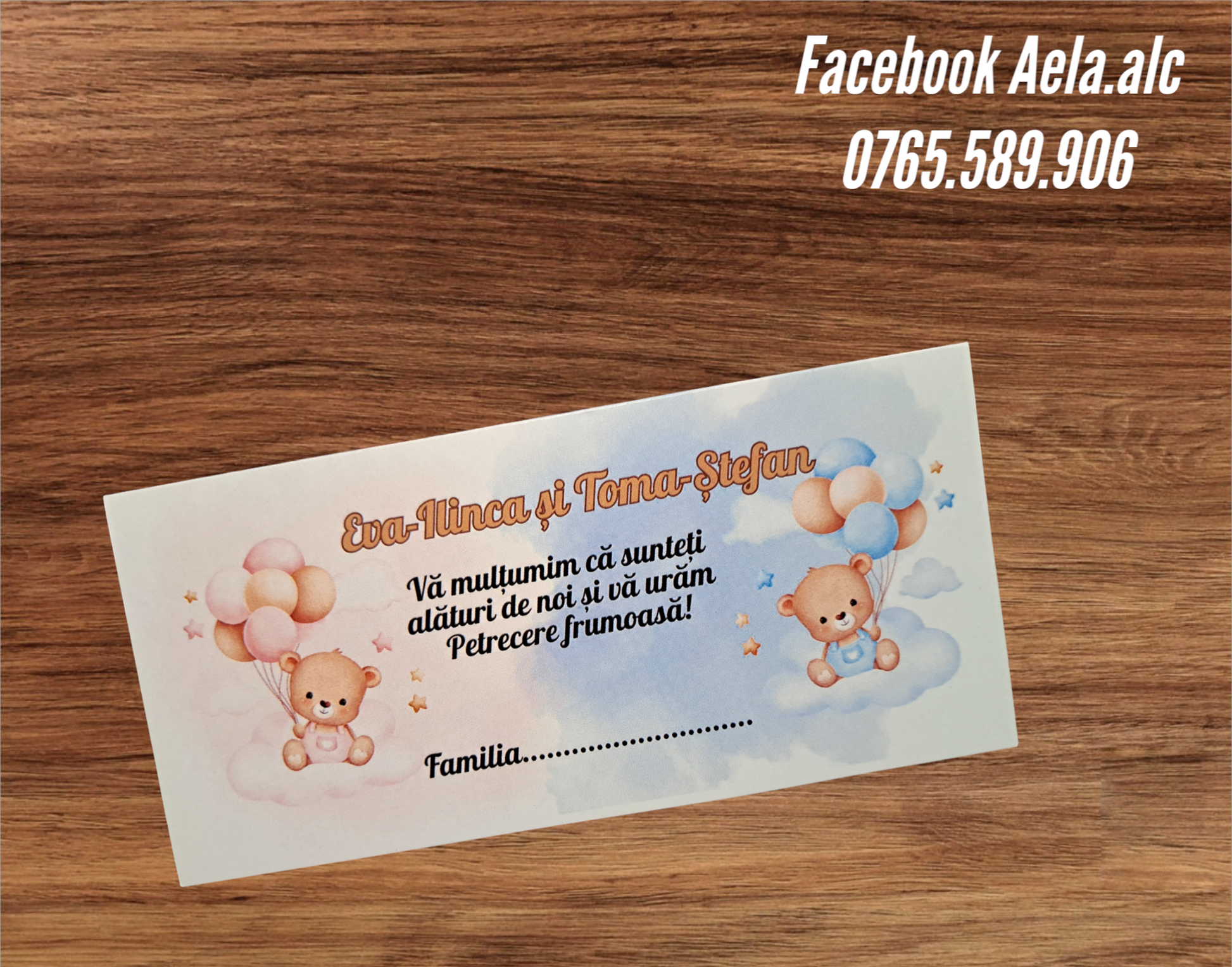 Plic de bani botez ustuleti cu baloane gemeni cod 45