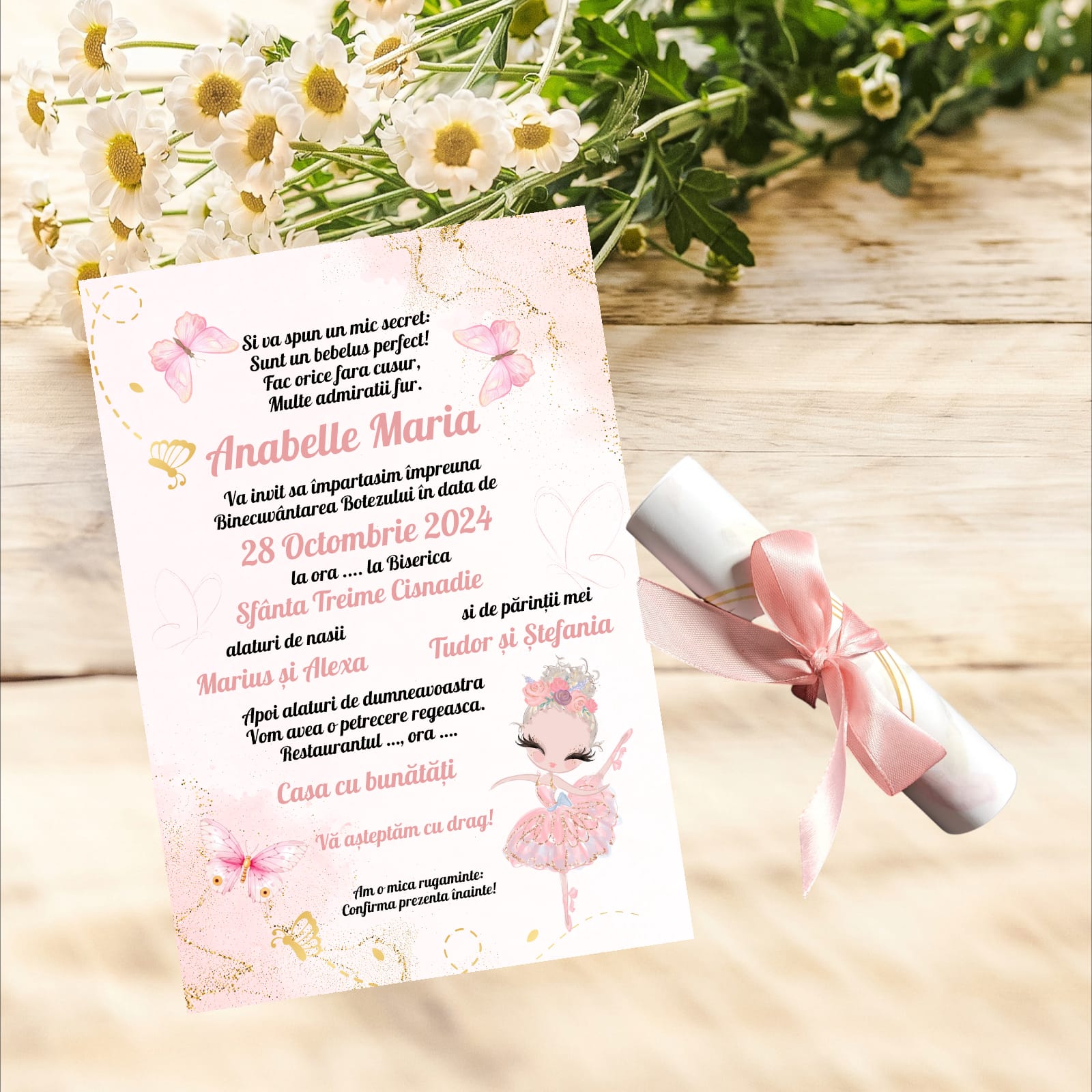 Invitație rulata mica balerina