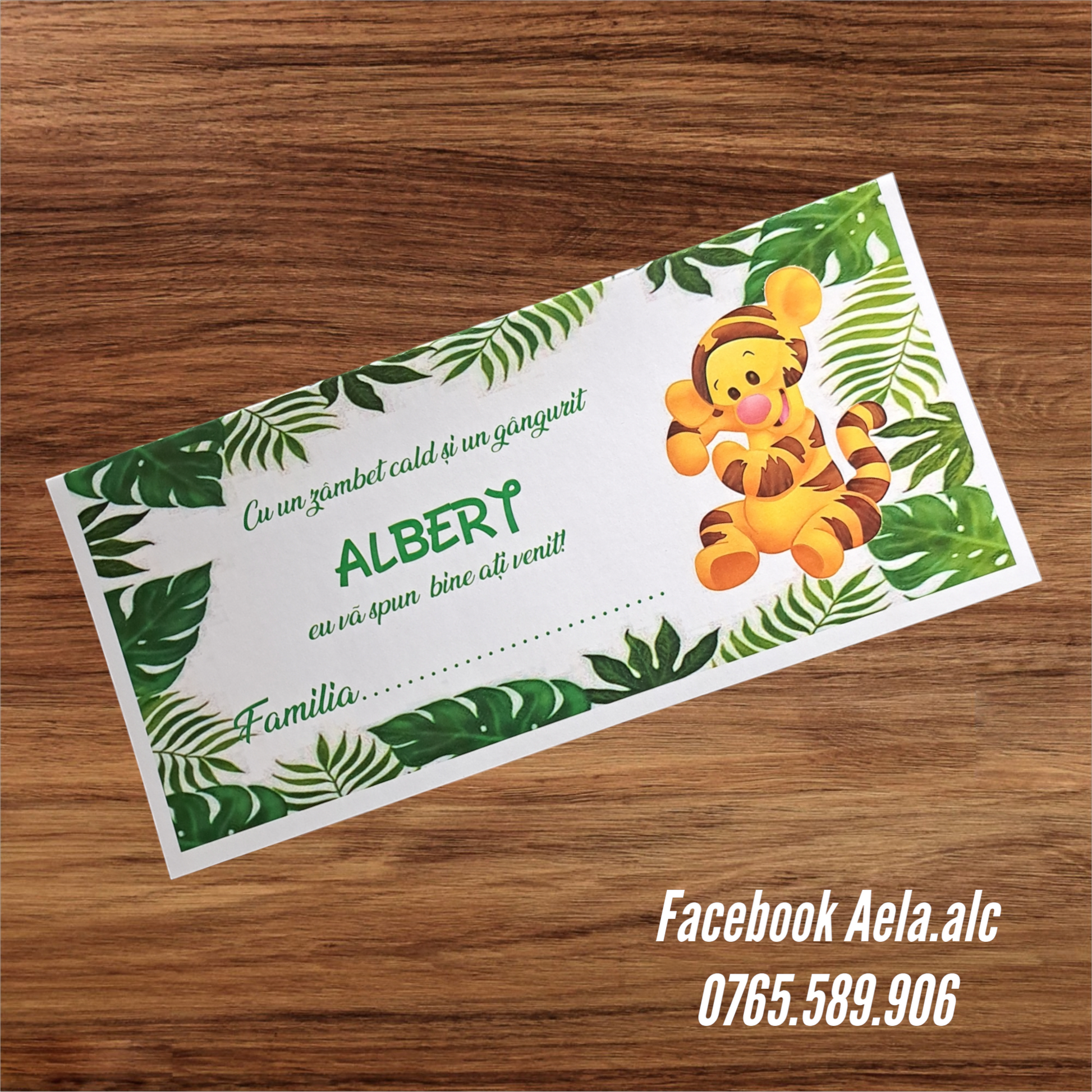 Plic de bani botez bebe tigru verde cod 134
